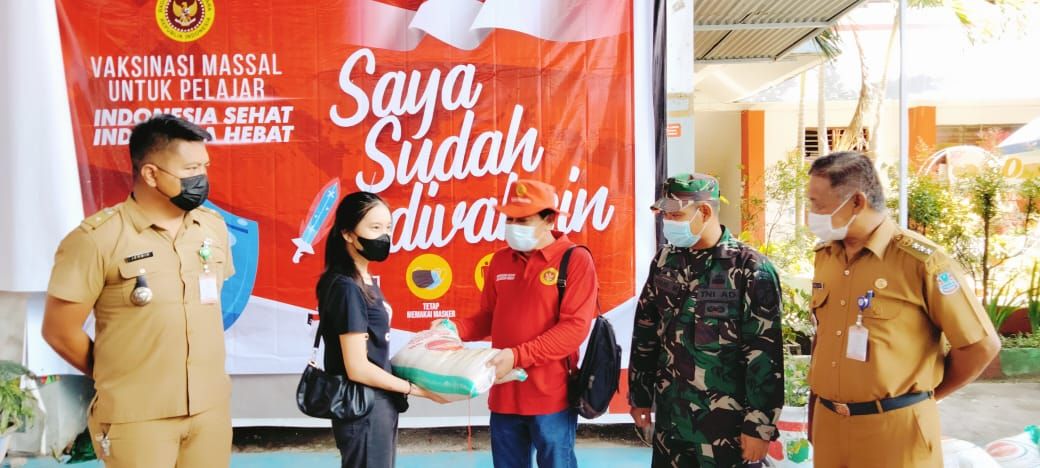 Dia menambahkan dalam pelaksanaan vaksinasi massal dosis ke dua dilakukan juga penyaluran bantuan sosial paket bapok beras 10 kg bagi pelajar, santri dan masyarakat di beberapa titik yaitu SMA Negeri 1 Manado, SMK Negeri 2 Manado, MAN Model 1 Manado dan sejumlah tempat di Kota Manado.