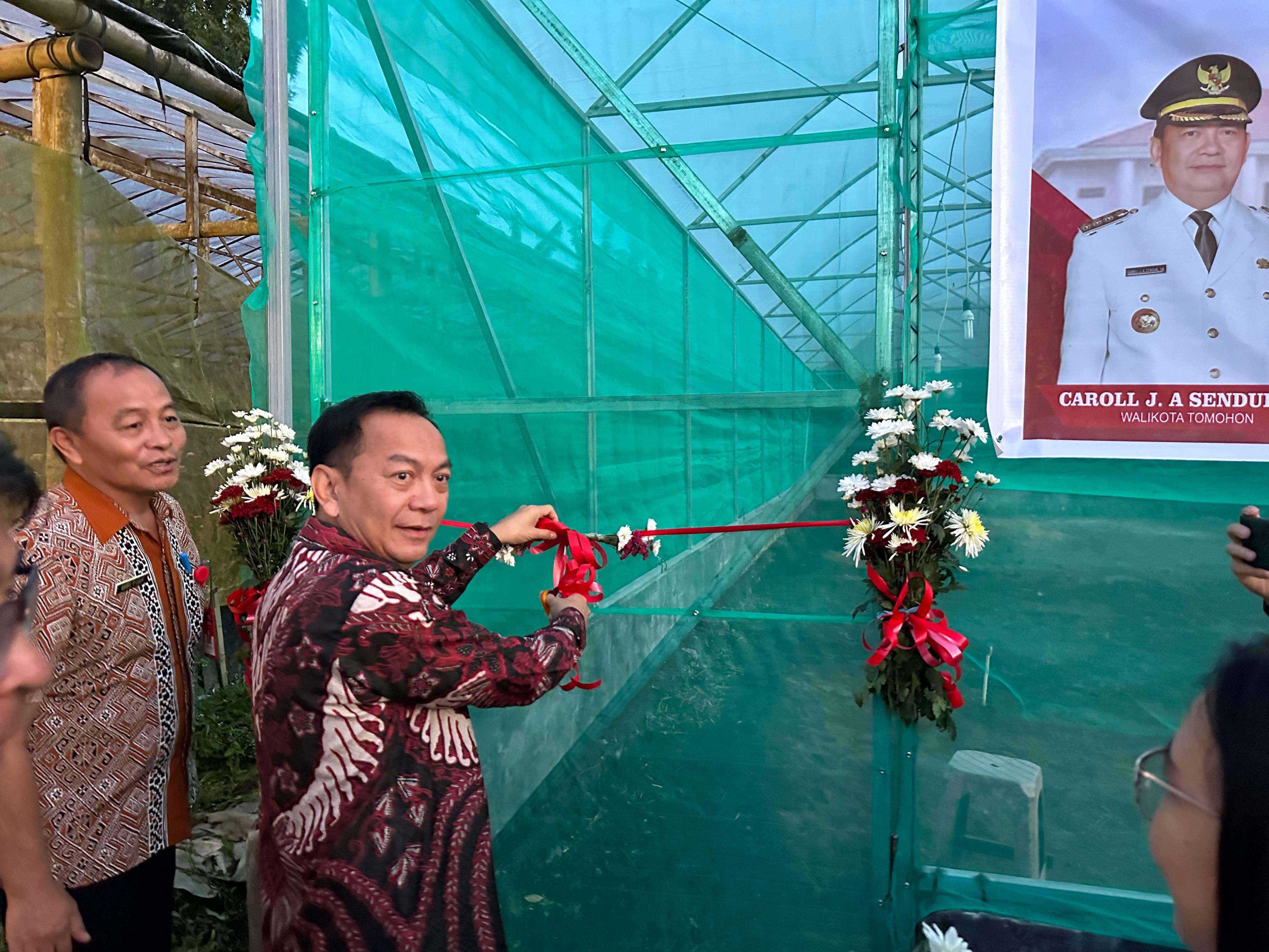 MoTomohon, Potretmanado -- Wali Kota Tomohon Carrol J.A Senduk menyerahkan bantuan Screen House kepada 9 Kelompok Tani Green House yang tergabung dalam Asosiasi Bunga Indonesia (Asbindo) Kota Tomohon, bertempat di Okoy Flower Garden Kakaskasen Tomohon Utara, Kamis (28/03/2024).