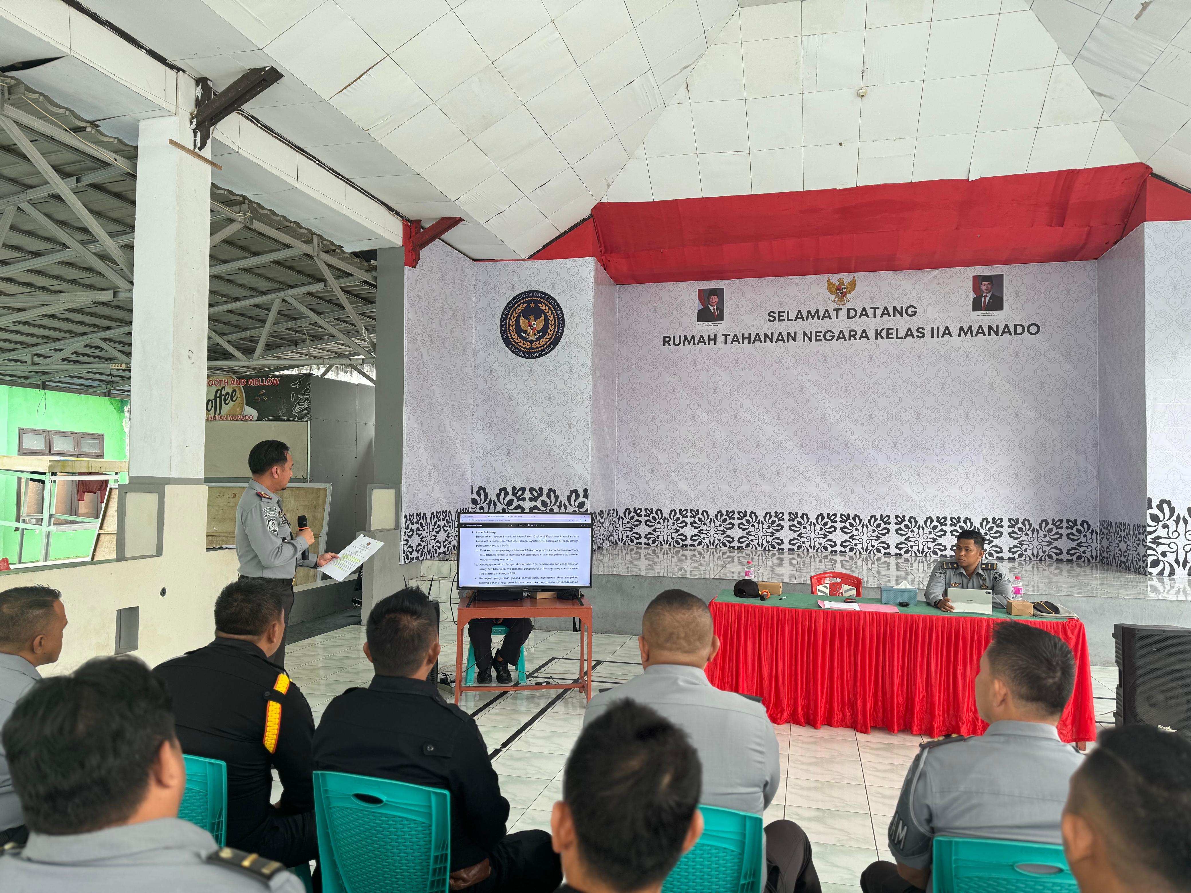 - Dalam upaya memperkuat tugas dan fungsi jajaran petugas pengamanan, Kepala Rutan Manado Ady Kusuma Wardana menggelar rapat perdana.