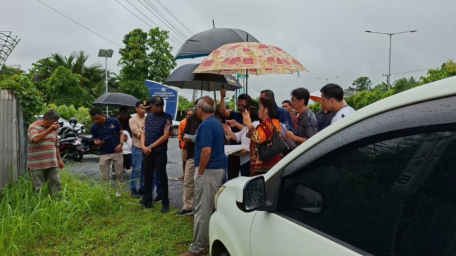 Manado - Majelis hakim PN Manado yang dipimpin oleh Yance Patiran, SH, MH, didampingi Ronald Massang SH, MH dan Edwin Marentek, SH, MH melakukan sidang lokasi terhadap perkara tindak pidana, dugaan penyerobotan yang dilakukan MM alias Eta, di lokasi yang berada tepat di samping utara gerbang perumahan sari, dan berkali-kali menengahi adu debat PH dengan penuntut umum, Jumat pagi.