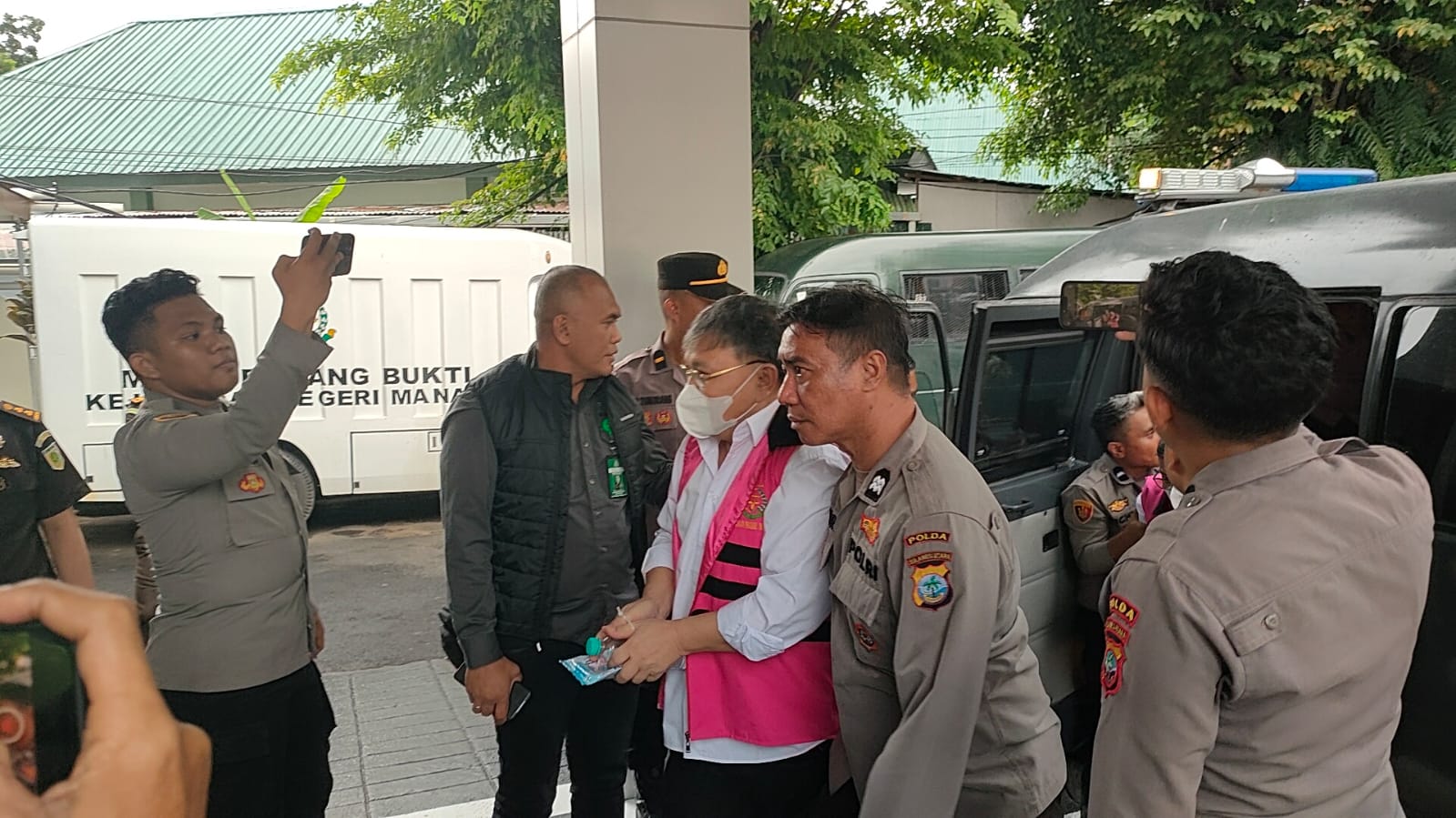 Sekitar KitaLima TSK Hibah GMIM Diserahkan ke Kejaksaan NegeriPara tersangka, didampingi keluarga serta penasehat hukum, tiba dengan pengawalan ketat aparat keamanan dari Polda SulutJoise Bukara AuthorA-A+Joise Bukara Editor